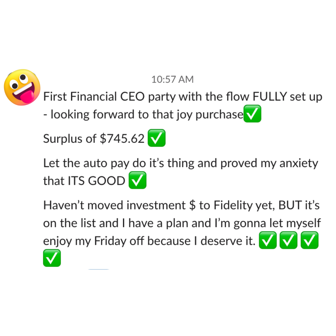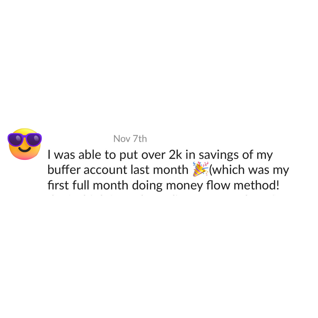 ​​Waiting to join will just delay your results. Implementing these strategies now and having access to coaching will help you have the money in the bank to pay for the bachelorette weekend, move with 3 months of bills in the bank, and have your Money Flow already set up for when you get that next paycheck.